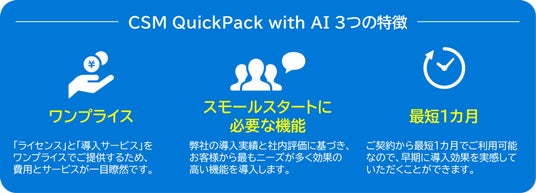 「CSM QuickPack with AI」は他にも厳選された機能を搭載し、顧客満足度を高めるとともに社内の業務生産性を向上させるアプローチが可能となっています。