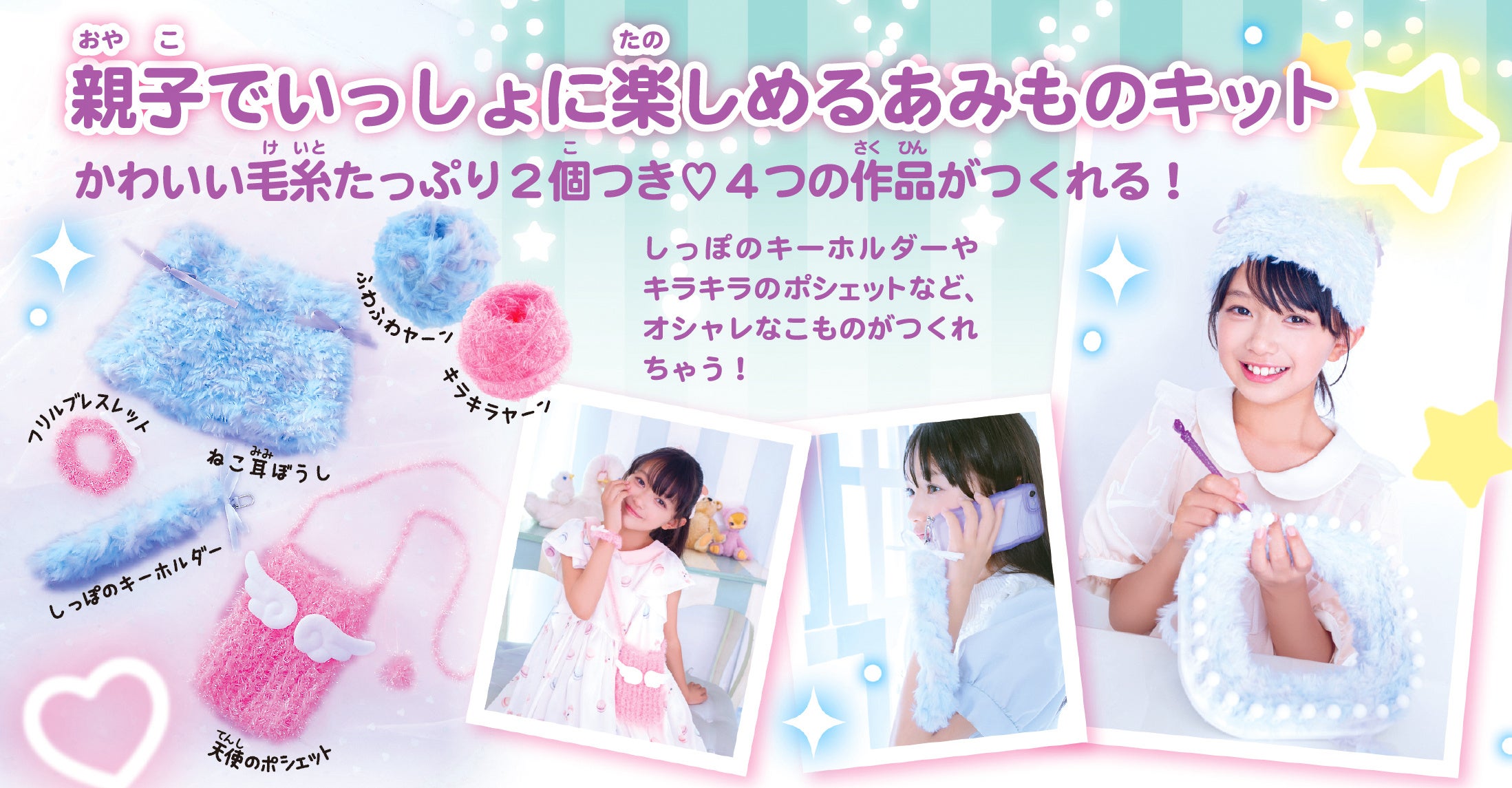 シリーズ累計部数58万部超の「ガールズクラフト」に、ふわふわキラキラの毛糸がついた編み物キットが登場!! 人気の「ねこ耳帽子」や「しっぽのキーホルダー」が自分でつくれます。