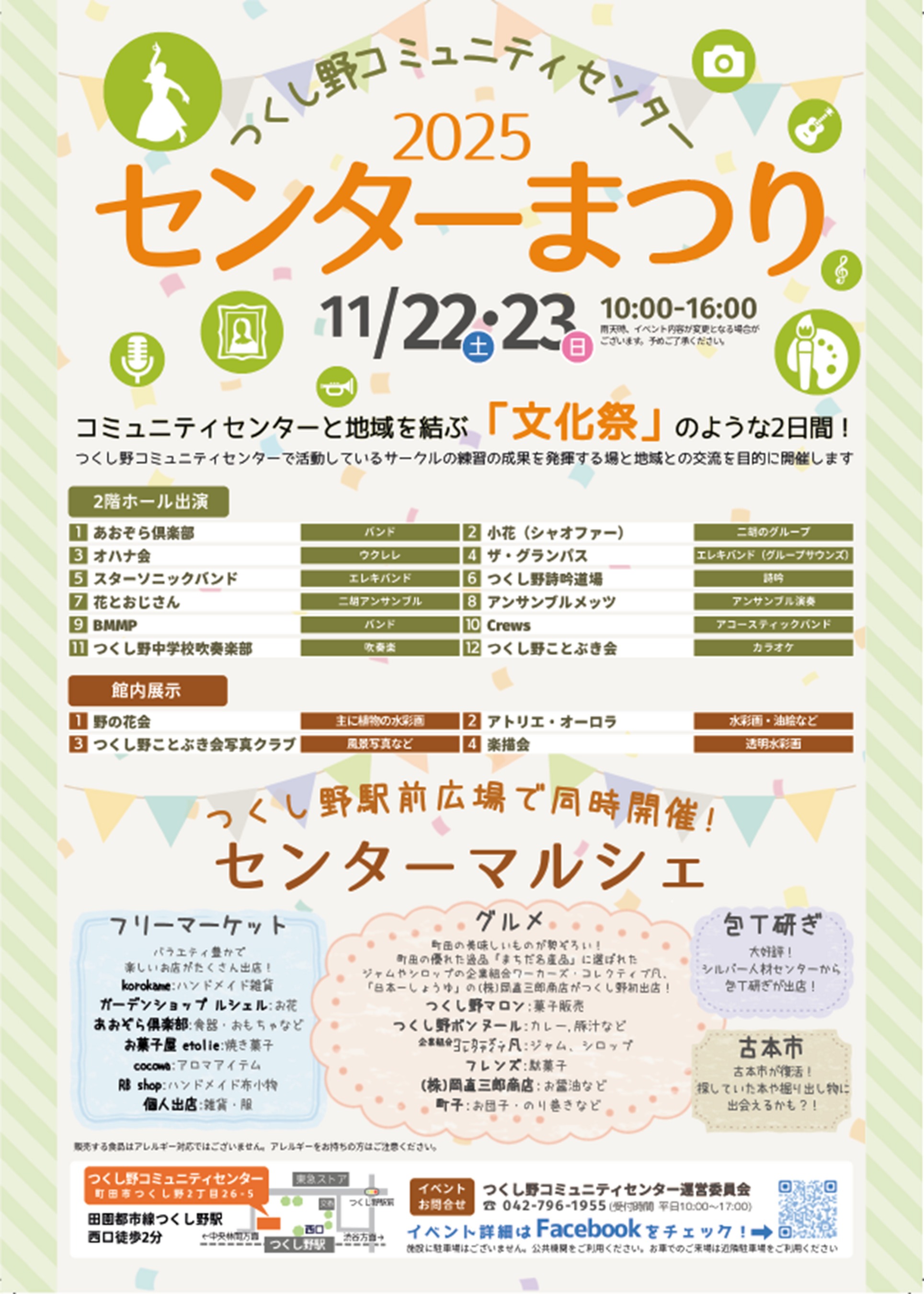 【東京都町田市】つくし野コミュニティセンターまつりを開催します