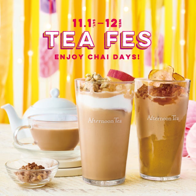 【Afternoon Tea】11/1紅茶の日から「ティーフェス2025」開催!イギリス菓子から着想「アップルクランブルチャイ」、秋の味覚を楽しむ「焼き芋メープルチャイ」など新作デザートチャイ3種