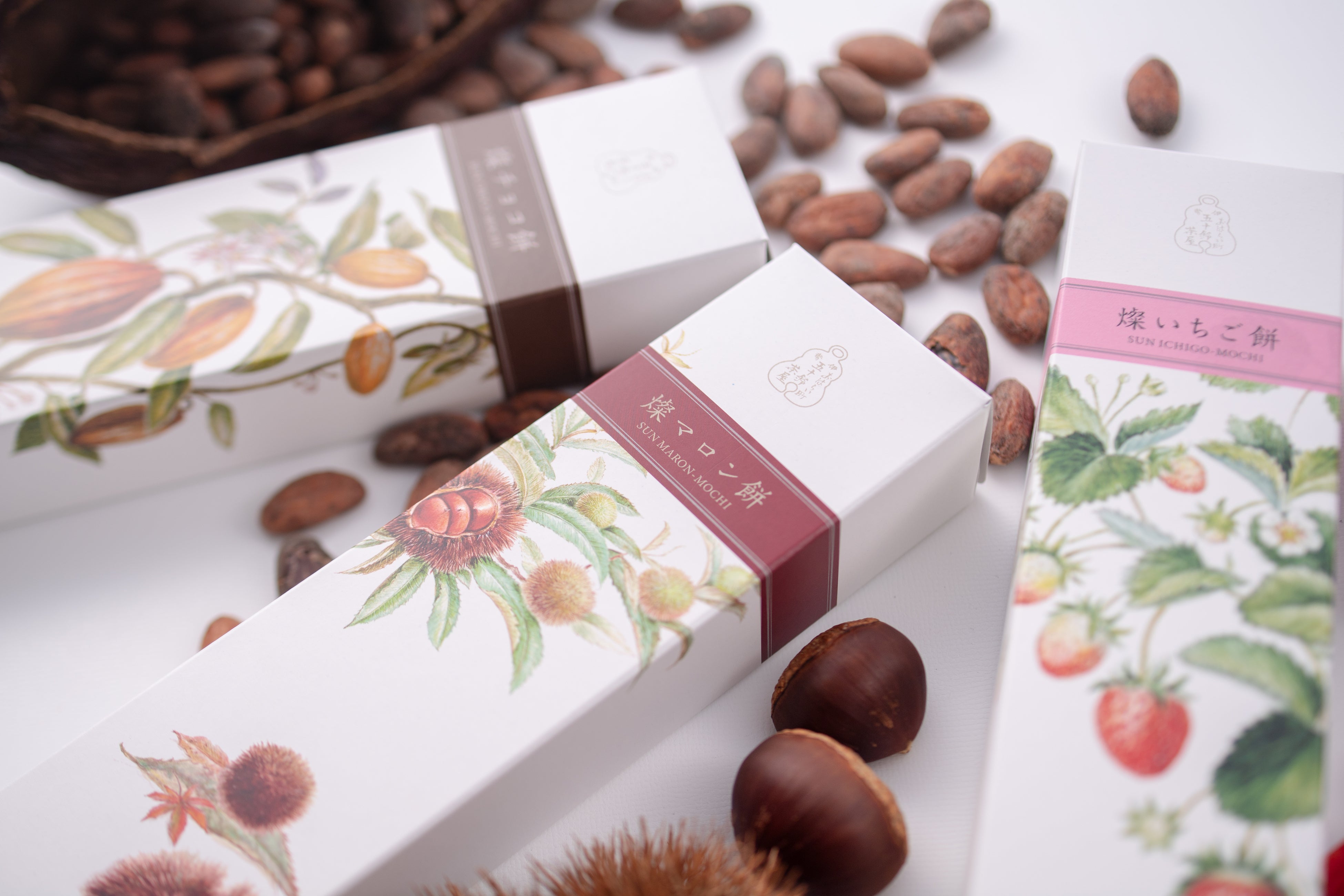 「燦マロン餅」「燦いちご餅」「燦チョコ餅」は、いちご・カカオ・栗といった太陽の光で育つ“太陽の実”に着目し、“あん”の奥深さを主役に据えた3種の餅菓子です。