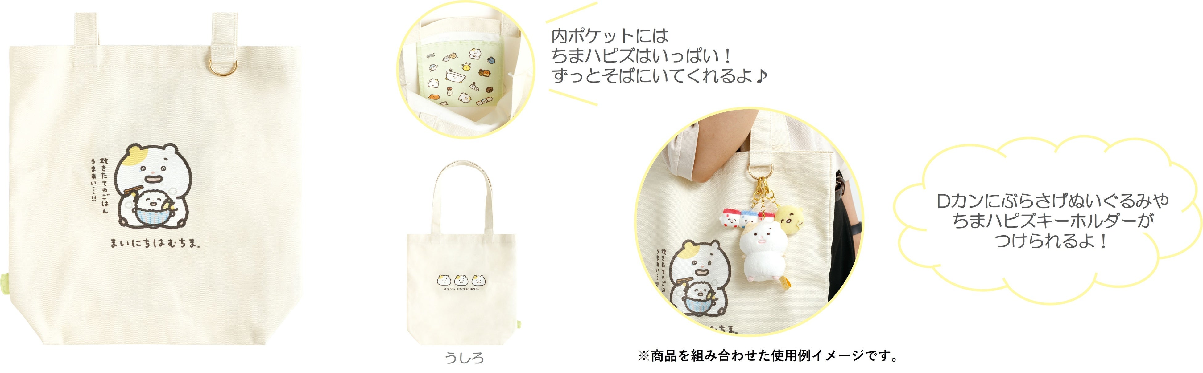 韓国をはじめとするアジアで人気のハムスター。ハムスターらしい可愛さが「まいにちはむちま」の魅力の一つとして、「サンエックスのコ企画」のテスト販売でも人気でした。メモ帳やシール、ボールペンなどの文房具、ぬいぐるみやポーチ、バッグなど多数のアイテムが登場します。