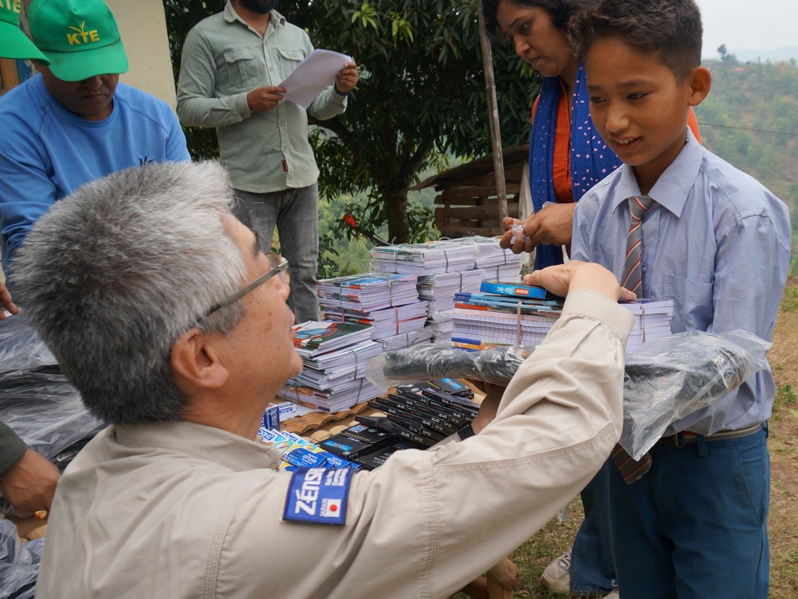 茶園労働者の子どもたちが通う学校で開催された文具の贈呈式の様子