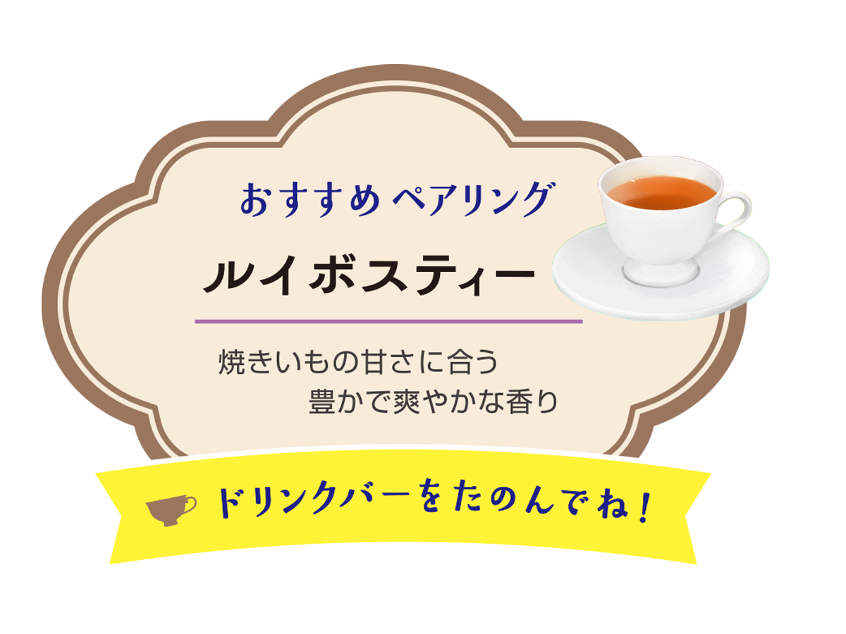 焼きいもの甘さに香ばしさがマッチするルイボスティーがおすすめのペアリングです。