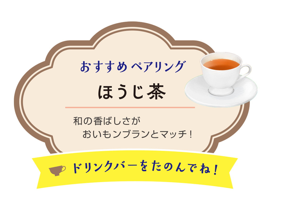 香ばしい風味がおいもンブランとマッチする、ほうじ茶がおすすめのペアリングです。