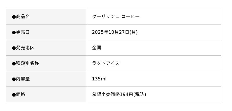 ※クーリッシュはアイスなので、一度溶けたものを再び凍らせると品質が変わります。