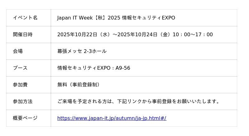 2025年10月22日(水)~24日(金)幕張メッセにて、「セキュリオ」のセキュリティ教育系機能を体験していただけます