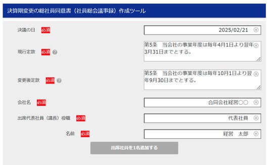 「合同会社の決算期変更の同意書・議事録作成ツール」について