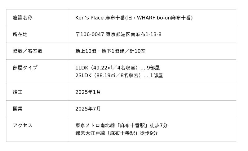 運営により、民泊×サービスアパートメント×防音室のハイブリッド型宿泊施設「Ken’s Place 麻布十