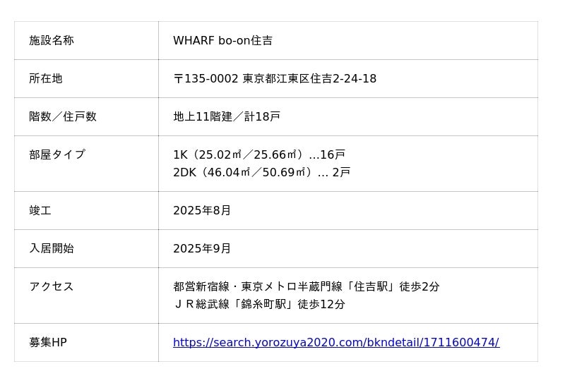 この成功を受け、シリーズ第二弾となる『WHARF bo-on住吉』が2025年8月に竣工し、2025年9月より入居開始する運びとなりました。