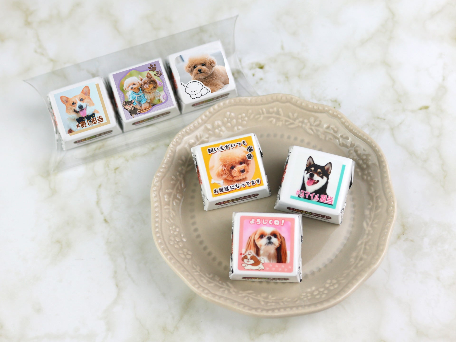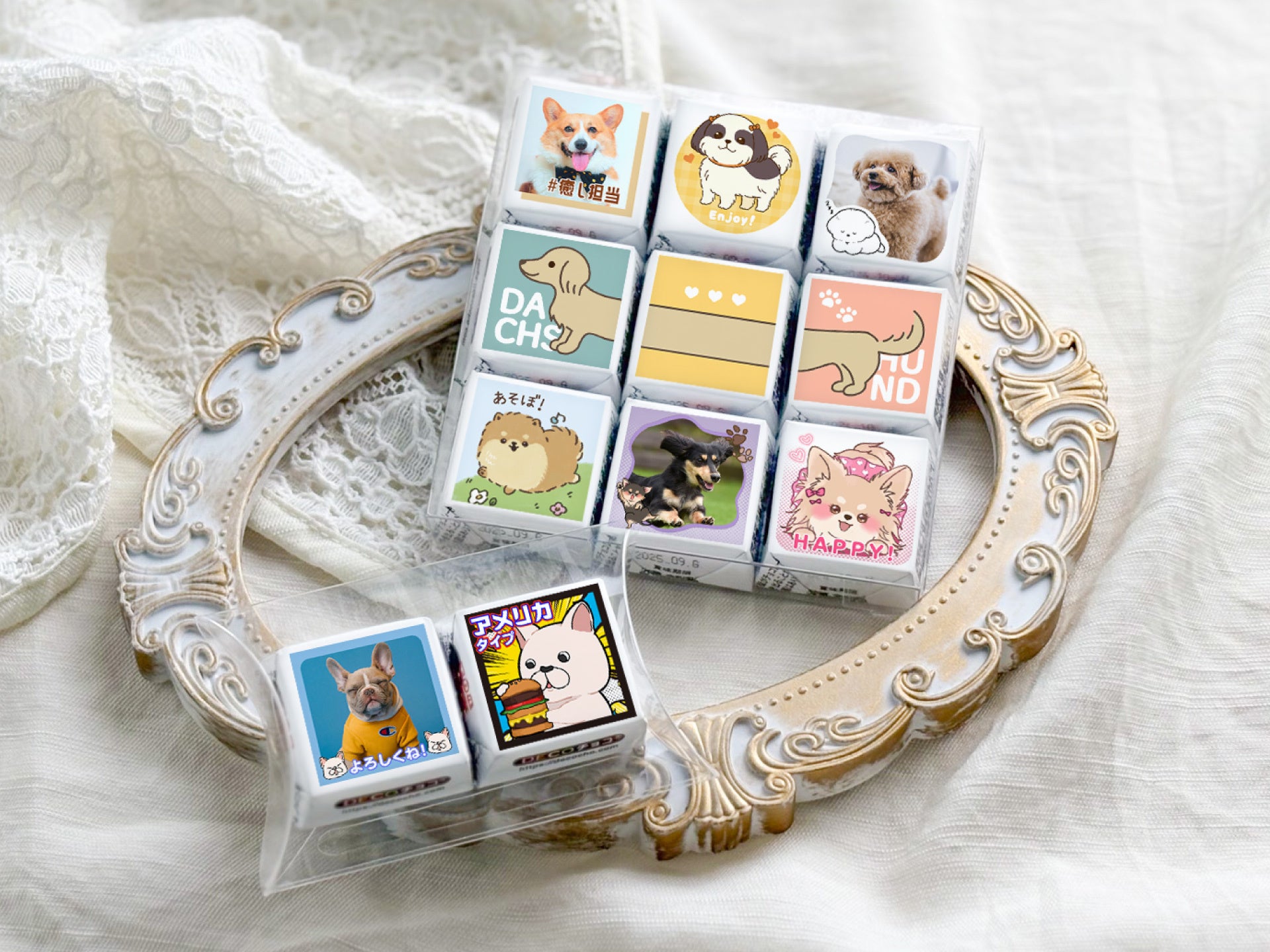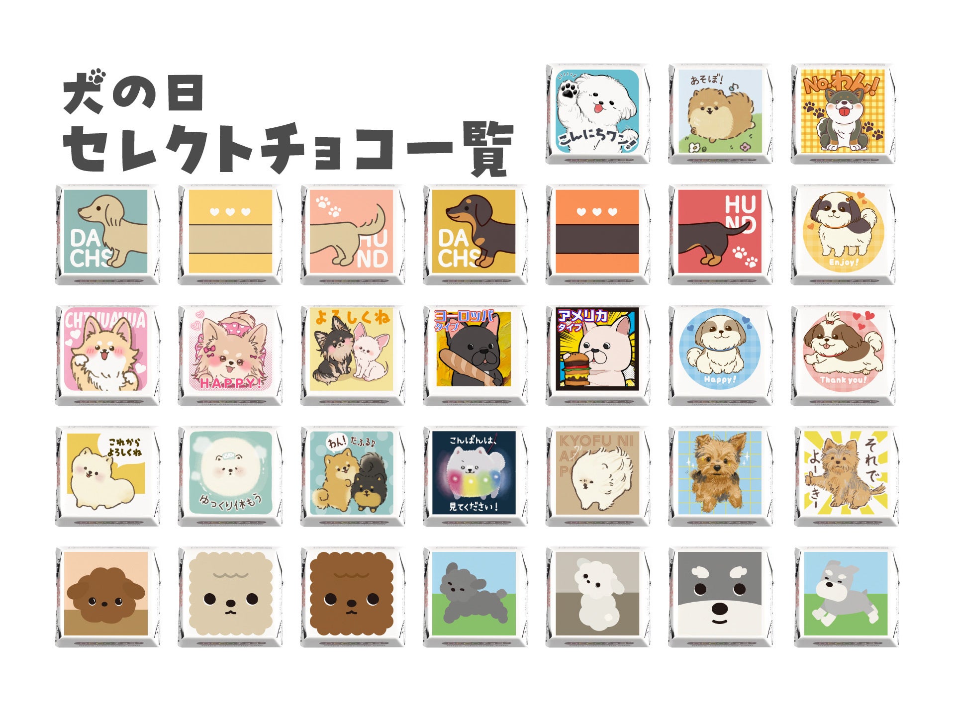 当社デザイナー描き下ろしのセレクトチョコを10犬種、31デザイン発売。1粒から購入できるため、ちょっとしたギフトや、「うちの子」チョコと組み合わせたオリジナルの詰め合わせにもぴったりです。