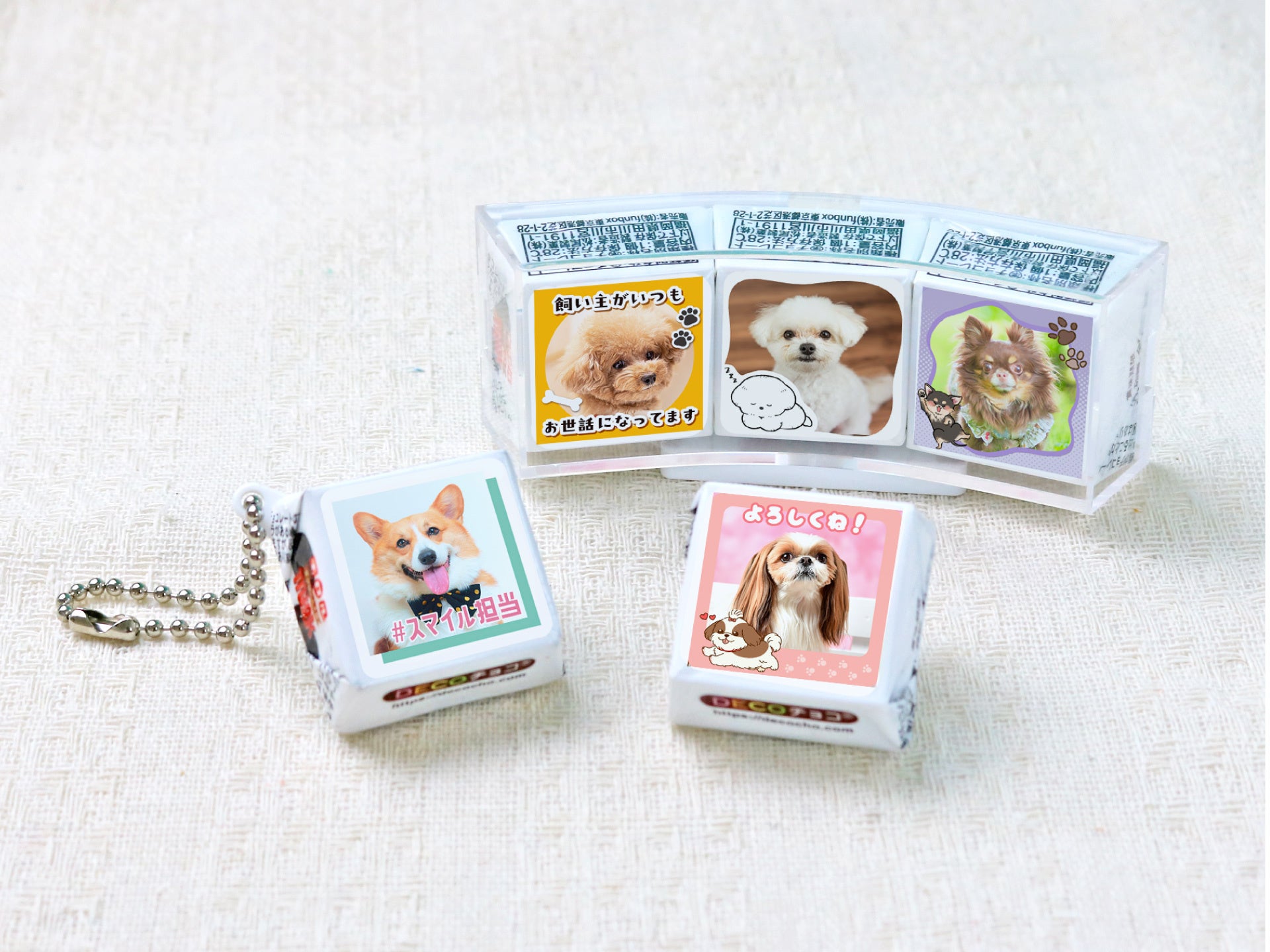 別売りのDECOチョコ保存用グッズを使用すれば、食べ終えたパッケージをそのままの形で残すことが可能です。愛犬の写真で作成したチョコのパッケージを持ち歩いたり、日常の目に触れる場所に置いたりと、身近なアイテムとしてお楽しみいただけます。