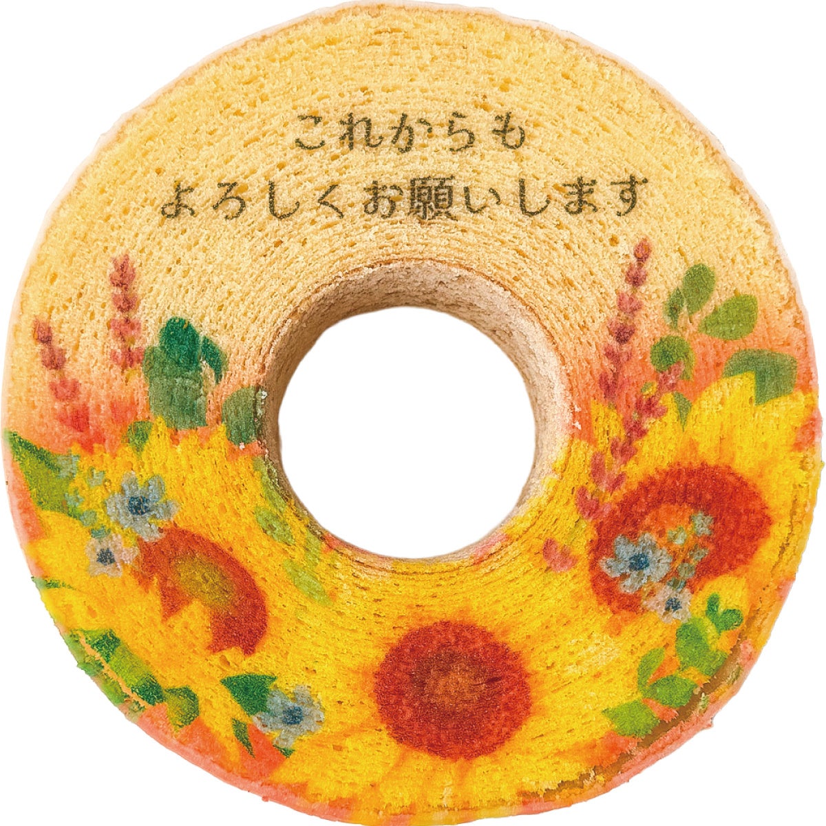 こちらが、弊社が実際に企業様向けにお配りしている印刷バウムクーヘンです。