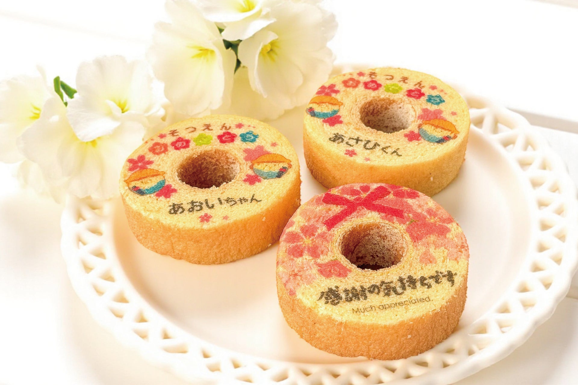 当店自慢のグルテンフリーのバウムクーヘンや銘菓に、オリジナルデザインやメッセージを加えて、世界に一つだけのサプライズプレゼントをお作りします。
