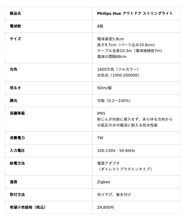 ■「Philips Hue アウトドアストリングライト」の主な特徴について