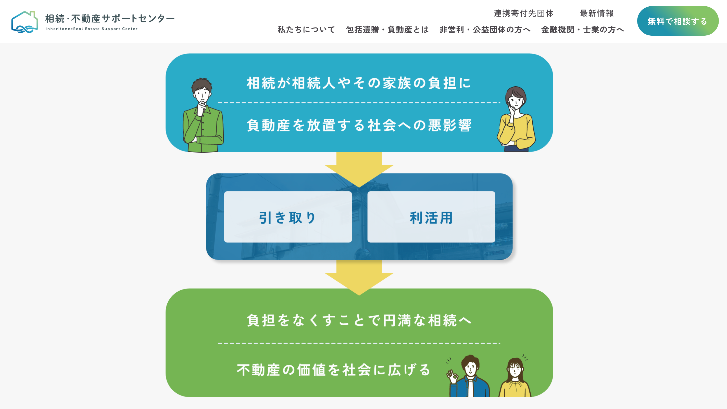 当団体ではNPO法人相続・不動産サポートセンター様と業務提携したことで、安心してご利用いただけるよう適切な対応方法を検討することが可能となりました。まずはお気軽にご相談いただけますと幸いです。