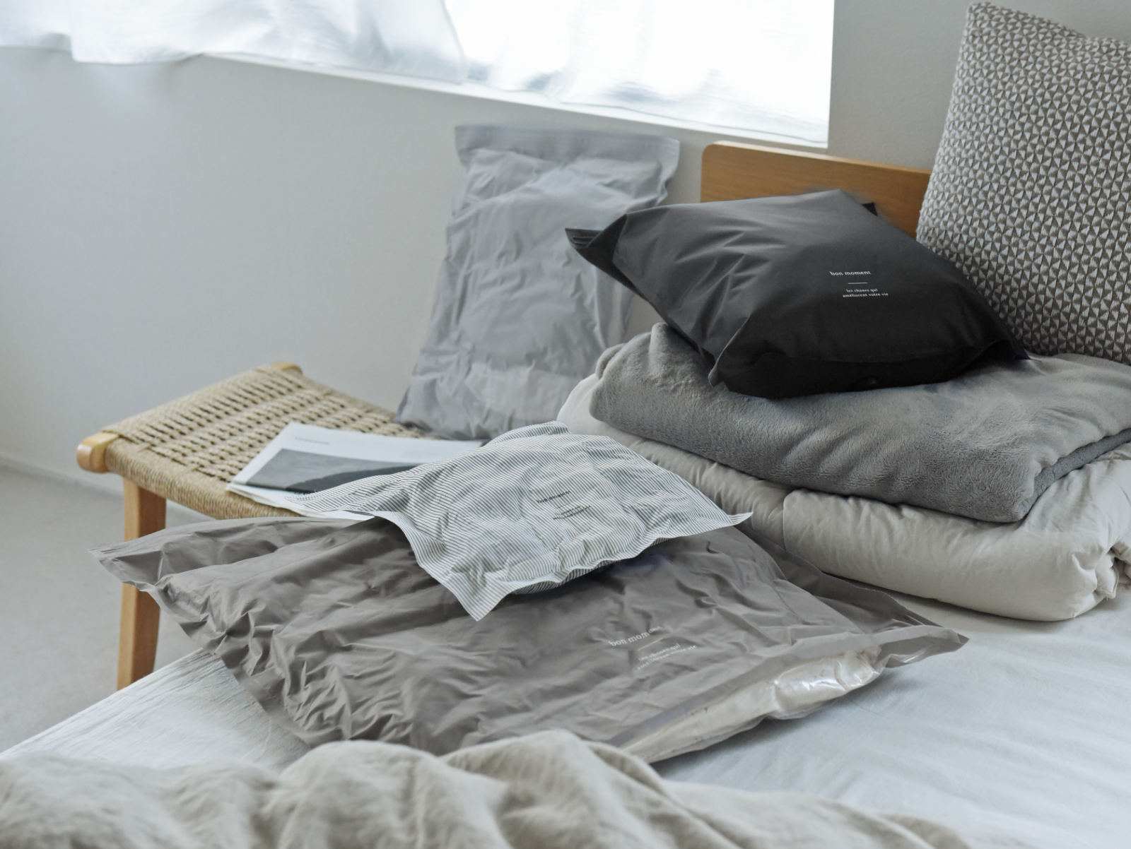 「そろそろ服を入れ替えなきゃな、でもめんどう・・・」と、衣替えをつい先延ばしにしがちな方に、bon momentの衣類圧縮袋がおすすめです。