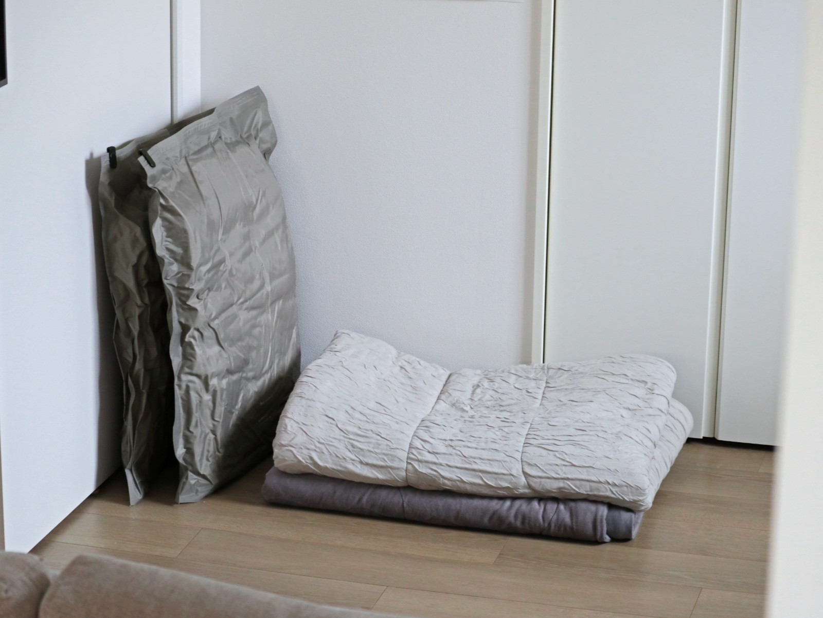 手で巻く(押す)だけで圧縮できるタイプ。掃除機などの器具を使う必要はありません。