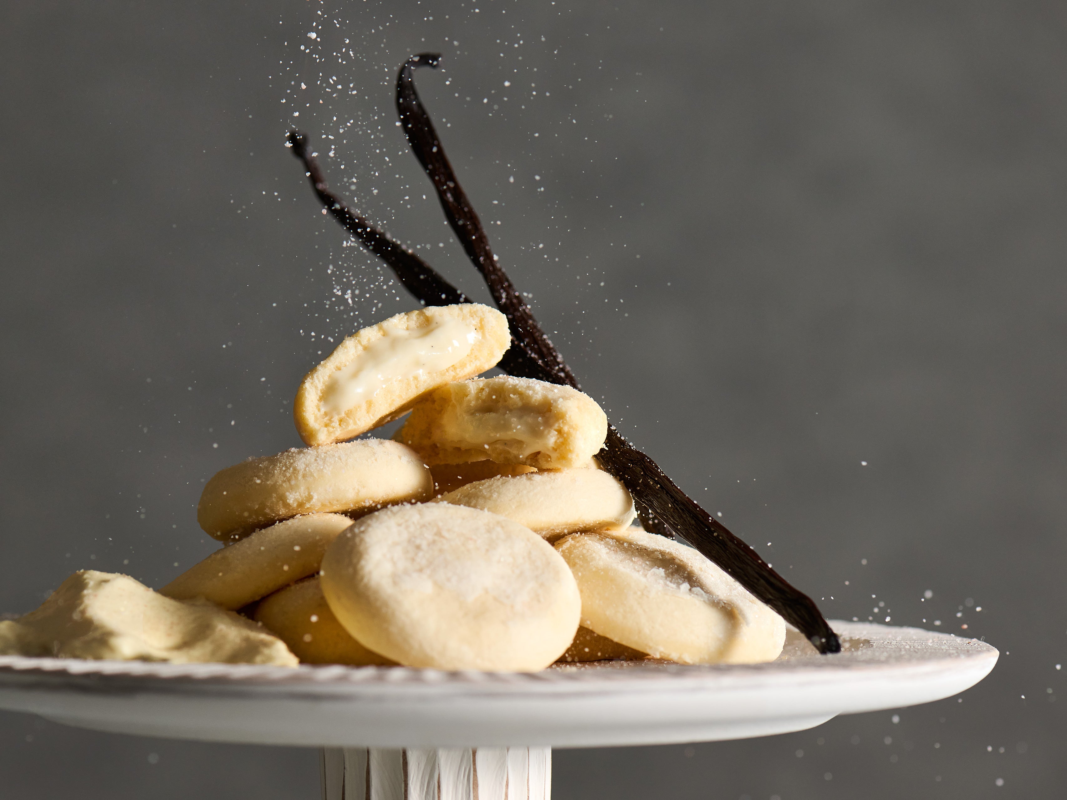 “とろ~り”と溶け合う、濃厚な特製バニラチョコレートクリーム。クリーミーかつ濃厚な横浜バニラ特製バニラチョコレートクリームを、サブレの中にたっぷりと包み込みました。一口頬張ると“とろ~り”と溶け合う濃密な甘さと、ふわりと香る芳醇なバニラの風味が優雅なひとときを飾ります。