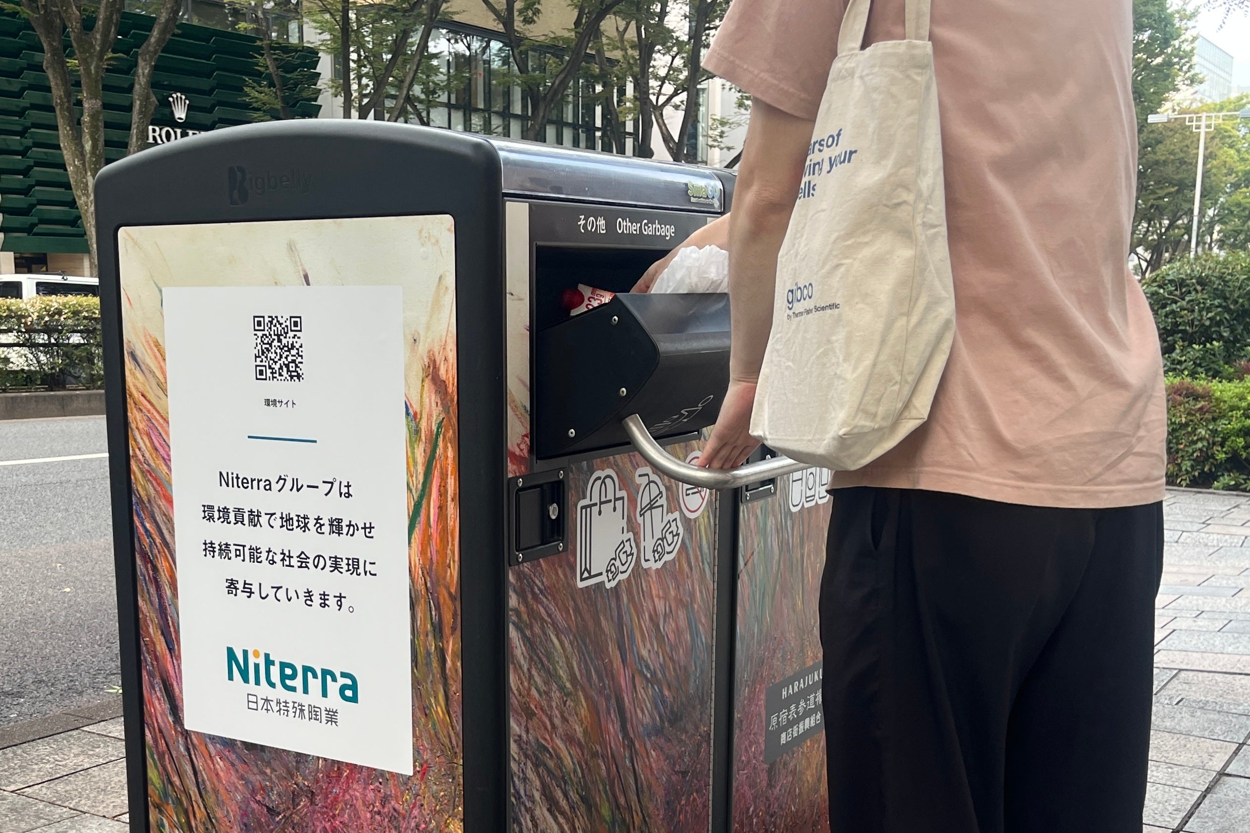 日本特殊陶業株式会社は環境貢献、持続可能な社会づくりを表現したいとの考えから2023年4月1日より「SmaGO」の運用支援を行っています。本取り組みで連携しているヘラルボニーのデザインで通りを秋色にし、引き続きゴミを適切な場所へ捨ててもらう循環型社会の発信、啓発を行っていきます。