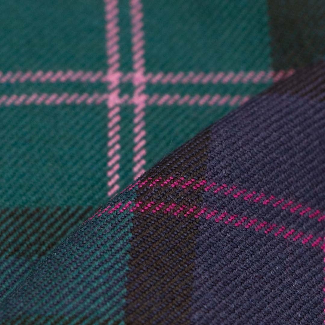・ピンクのペンが印象的なブラックウォッチ柄