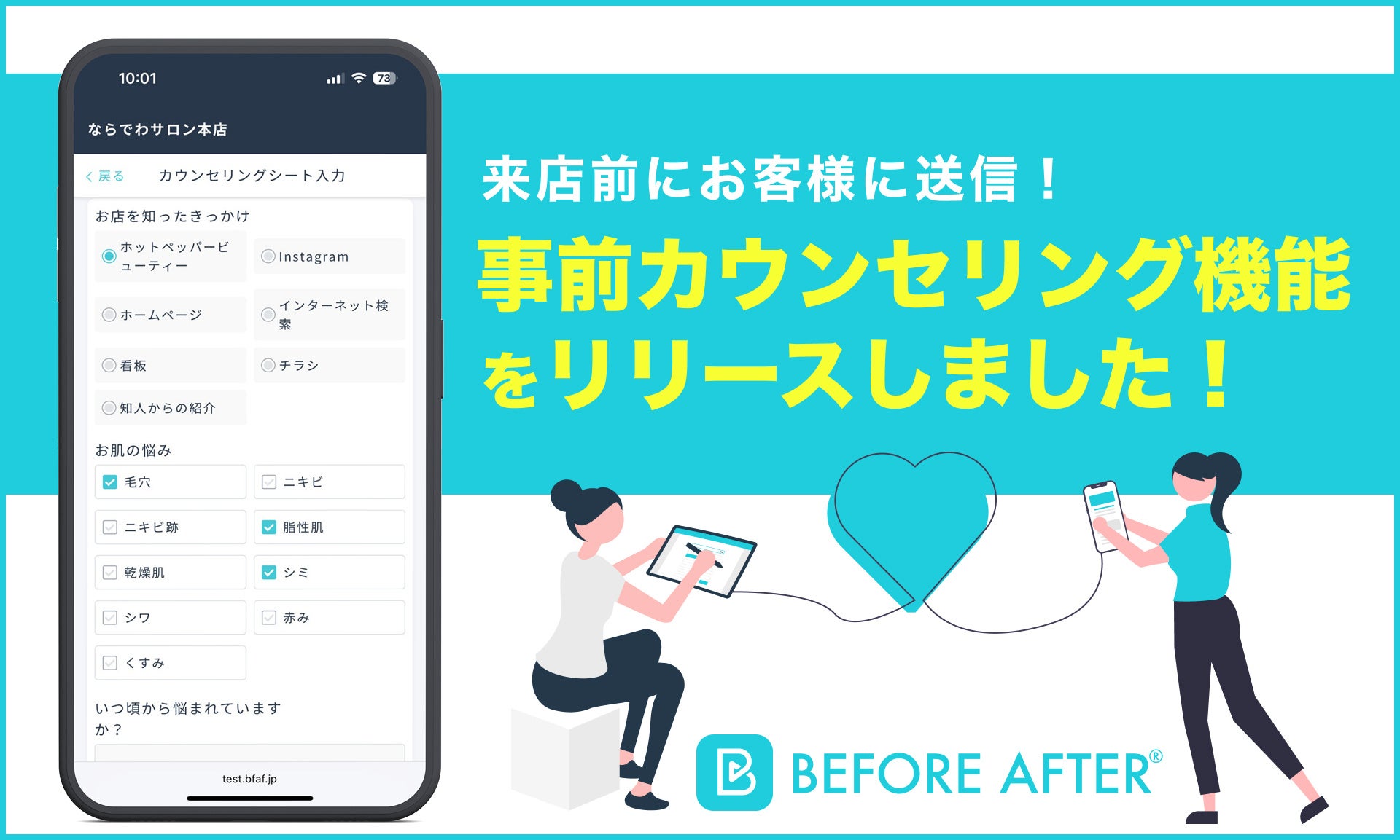 サロン向け顧客管理アプリ「BEFORE AFTER(R)」に事前カウンセリング機能搭載!
