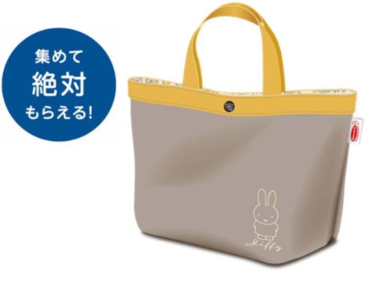 1. 対象商品に貼付されている応募マーク25枚を集めて送ると、ミッフィーがデザインされた、ミッフィーオリジナルバッグが絶対に貰えます。