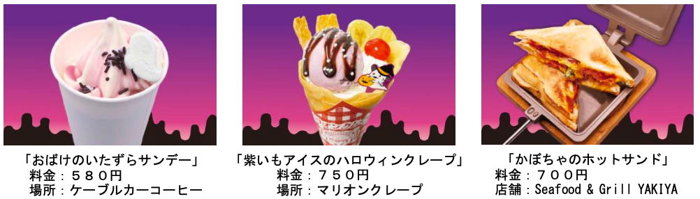 さらに、島内の一部飲食店舗でハロウィン限定フードも登場し、見るだけでなく実際に味覚でもハロウィンをお楽しみいただけます。