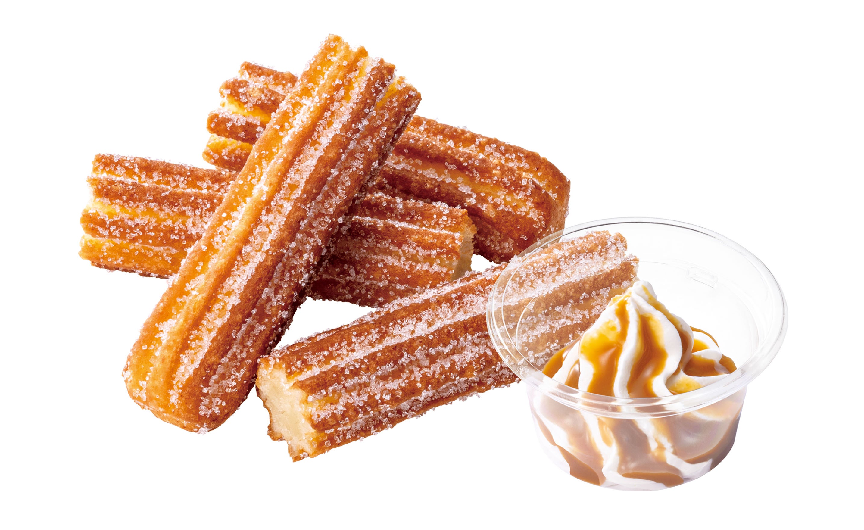 「ディップチュロ 塩キャラメルソース」は、フランス産ロレーヌ岩塩を使用した塩キャラメルソースをかけたホイップクリームに、サクッともちもち食感のチュロをディップしてお楽しみいただくスイーツです。食後のデザートや軽食として手軽にお楽しみいただけます。