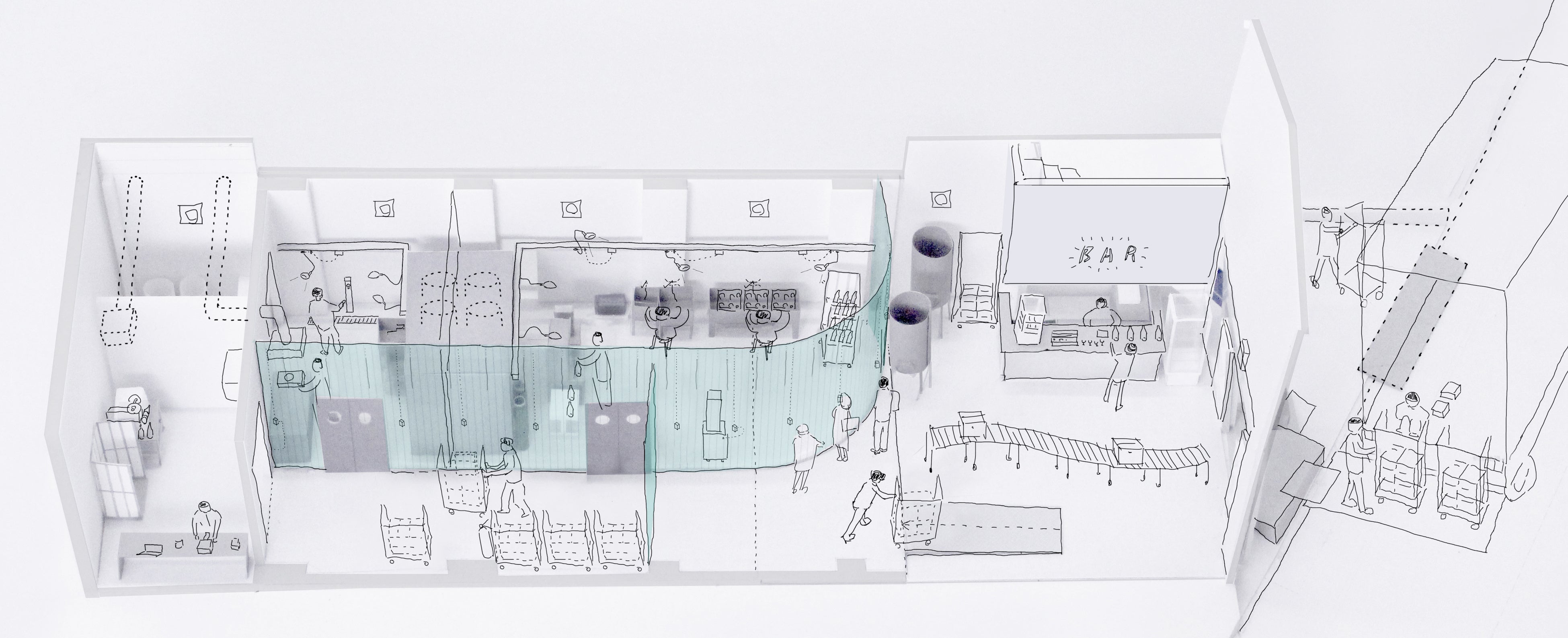 CAN-PANYという名称は「充填する仲間」を意味する造語です。透明な壁で構成された工場で製造プロセスを街に開き、「つくる」行為を都市生活の中に再提示します。