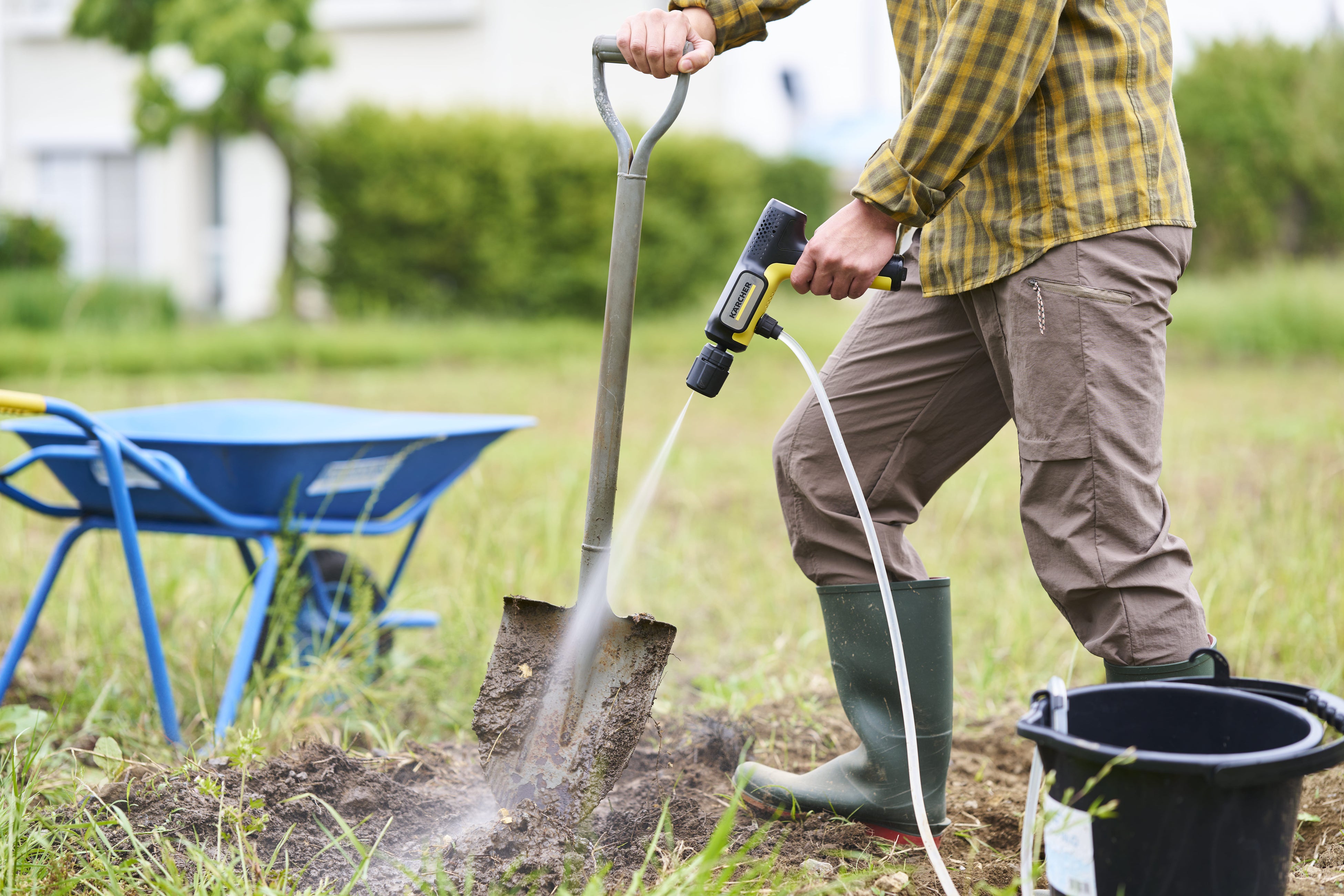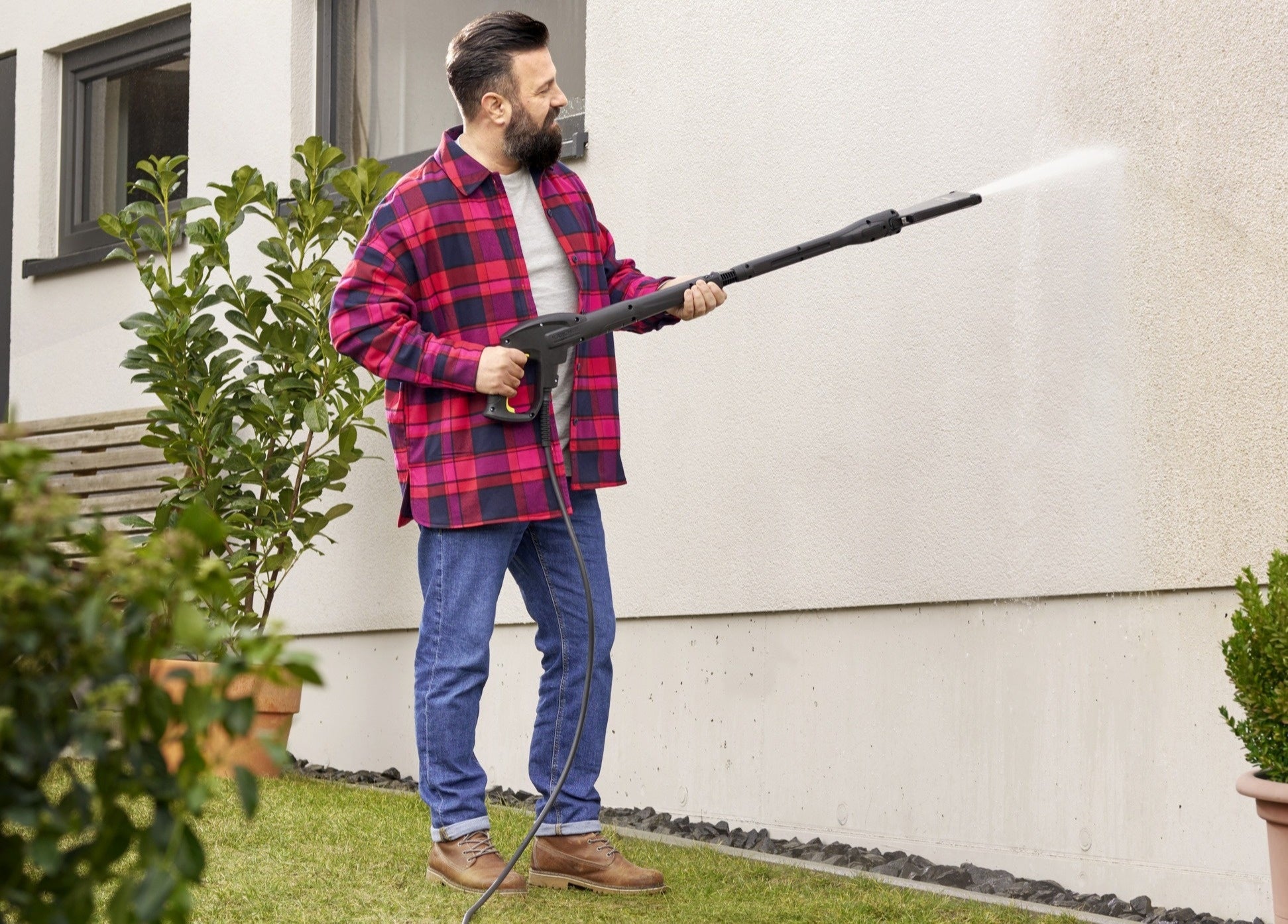 「eco!Booster(エコブースター) 145」は、独自の技術で標準ノズル(※)の1.5倍広い洗浄幅を作り出す、ケルヒャーの家庭用高圧洗浄機「K 4」「K 5」専用ノズルです。水と電力の使用量は同じまま洗浄面積を1.5倍に増やし、高圧洗浄の洗浄作業の効率と省エネ性を飛躍的に向上させます。