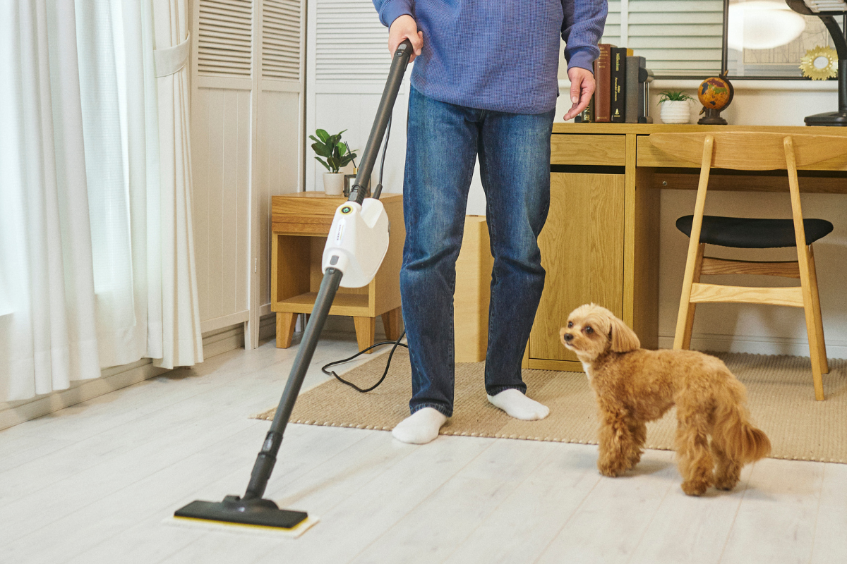 ハンディサイズを実現したスチームクリーナー。手軽さを追求した本体は、約1.5kgの最軽量・最コンパクトクラス(当社比)。コンパクトでありながら、約30秒という短時間でのスチーム生成と連続使用を可能にしました。収納場所を選ばず、思い立った時にすぐに取り出して使える「瞬発力」で、家中の様々な汚れを除去できます。フロアノズルと延長パイプ付属の「SC 1 Multi & Up」を使用すれば、床や高所の清掃にも活躍します。
