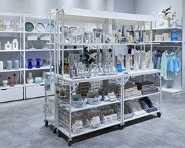 ■ラテラル・ロコ 本体税込 26,070円~ ※本体フレーム当社の事例のようにオフィスにもフィットし、 スーパーやグロッサリー、コスメ、雑貨店などの小売店舗や各種ショールームなど、幅広い業種にフィットする、当社主力のシステム什器です。