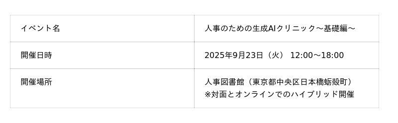 「人事図書館」は、2025年9月23日に「人事のための生成AIクリニック~基礎編~」を初開催しました。人事担当者からの関心が高く満席での開催となりましたのでその様子をお届けします。