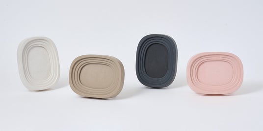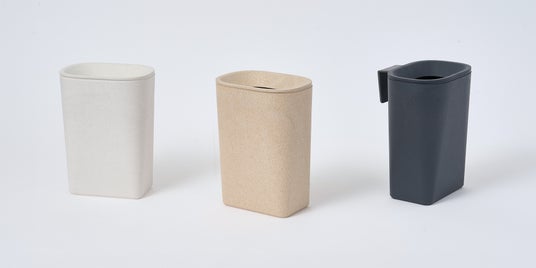 プロダクトに採用したバイオプラスチック素材「TEXa(テクサ)」は、本来廃棄されるはずのお米のもみ殻を多く含むため、石油由来のプラスチックの使用量を約40%削減しました。細かいお米のもみ殻が見えることで、一般的なプラスチックのイメージとは異なるナチュラルで優しいニュアンスを表現しています。再生ポリカーボネート「DReC PC(ダイレックPC)」は透明感が美しい素材で、自社で発生する廃材をリサイクルしています。サステナブル素材ならではの表面感や個体差は表情の違いとしてお楽しみいただけます。