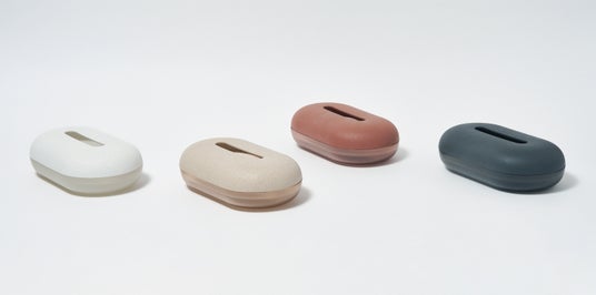 薬液の補充時にポンプの置き場所に困るという、いつの間にか当たり前に受け入れてしまっている小さな使い勝手の澱みに着目し、製品開発の起点に据えた点が秀逸だ。トラック形状の断面を持つ容器部分は、ポンプをずらすだけで薬液の補充ができるという要請から導かれているが、容量を確保しながら全高を低く抑える事にもなり、ポンプの押しやすさに貢献している。自社の廃材やもみ殻を再利用した樹脂の筐体が持つ風合いも、手洗いのシーンによく馴染むはずだ。