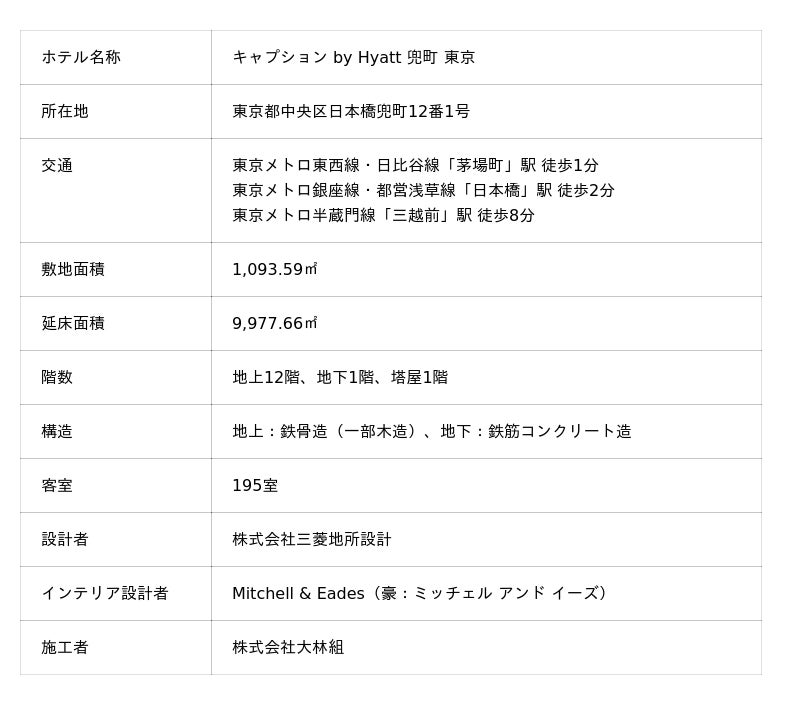 「“訪れる街”から“滞在する街”へ 兜町・茅場町エリア賑わいの核となるホテル東京初進出!「キャプション by Hyatt 兜町 東京」竣工 2025年10月7日(火)開業決定、7月8日(火)より宿泊予約の受付開始」