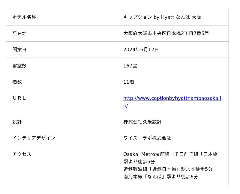 「キャプション by Hyatt なんば 大阪」は、ハイアットが2019年に発表した新ブランド「キャプション by Hyatt」の世界で3店舗目、日本初進出のホテルとして注目を集めています。