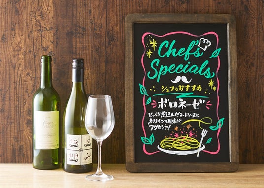 また、ペン先の力加減で文字や線の太さが自由に変えられるので、英字の筆記体での表現にも対応。洋食店やカフェのメニュー、結婚式のウェルカムボードなど、おしゃれな演出にもおすすめです。