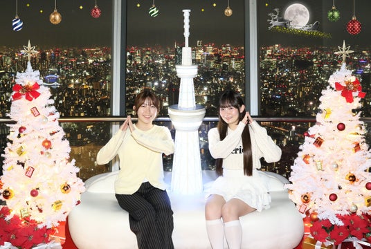 東京スカイツリーの展望台では、「空の上のクリスマスパーティー」をテーマしたクリスマス限定の装飾やフォトスポットが設置されるほか、今年新たになったクリスマス限定のコスチュームを着たソラカラちゃんとのグリーティングもお楽しみいただけます。