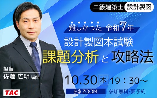 簿記検定試験、税理士、公認会計士などの資格取得に向けた教育サービスを展開しているTAC株式会社(東京都千代田区、代表取締役:多田 敏男)は、2025年10月30日(木) 19:30より、オンラインで二級建築士(設計製図)難しかった令和7年設計製図本試験課題分析と攻略法を開催します。