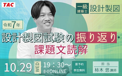 簿記検定試験、税理士、公認会計士などの資格取得に向けた教育サービスを展開しているTAC株式会社(東京都千代田区、代表取締役:多田 敏男)は、2025年10月29日(水) 19:30より、オンラインで一級建築士(設計製図)令和7年 設計製図試験の振り返り・課題文読解を開催します。