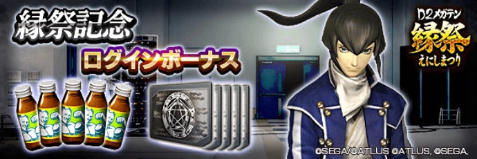 期間中、“真・女神転生IV 縁祭記念召喚”を行うことができる「縁祭記念召喚札」最大50枚や、「期限付きマッスルドリンコ」最大5個が入手できる“縁祭記念ログインボーナス”を開催します。