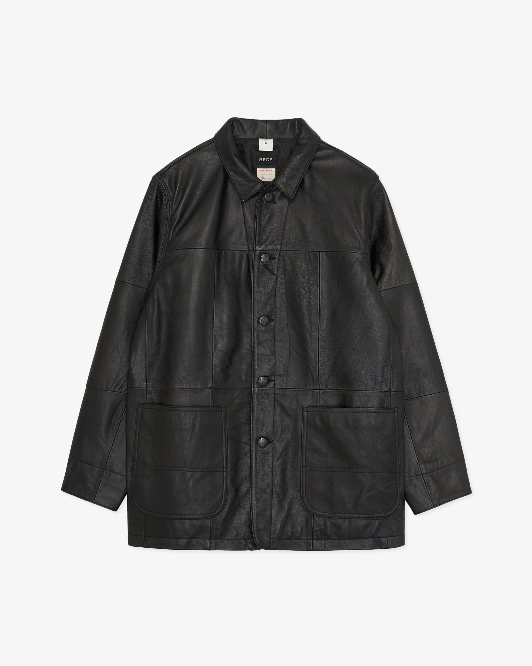 FRONT 11201は、RAKUTEN FASHION WEEK TOKYO 25SS にて古着屋独自の視点から提案するサステナブルライン「REDE(レデ)」を発表以降、残布をクラッシュして製作する”反毛(ハンモウ)”や再生繊維を中心に、アンティークテキスタイルをアップサイクルする等、環境負荷に配慮したコレクションを毎シーズン展開しています。 同じものはない、1点物のヴィンテージレザーを用いた特別なコラボレーションとなります。