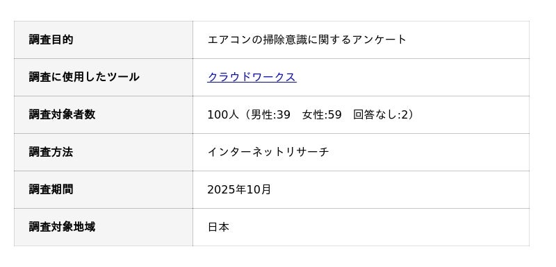 エアコンの掃除意識に関するアンケート調査の概要