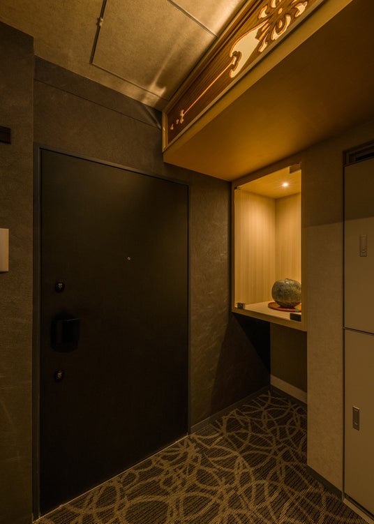 入居者や来訪者が楽しめるよう、共用部分に料亭で使用されていた欄間や調度品を展示。