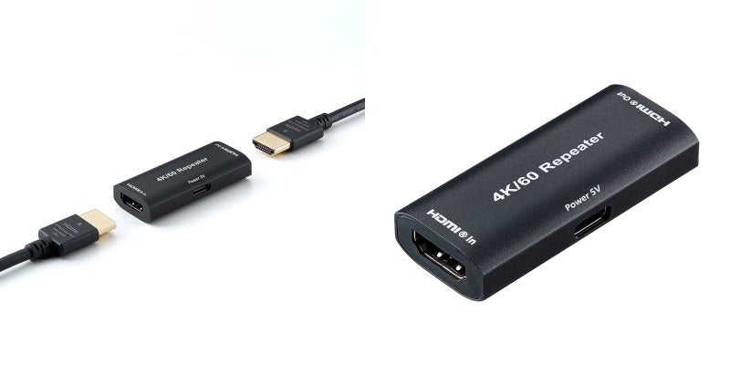 4K/60Hz・HDR対応で、最大40mまでHDMI信号を高画質のまま延長できる、小型で電源不要のHDMI中継アダプタ
