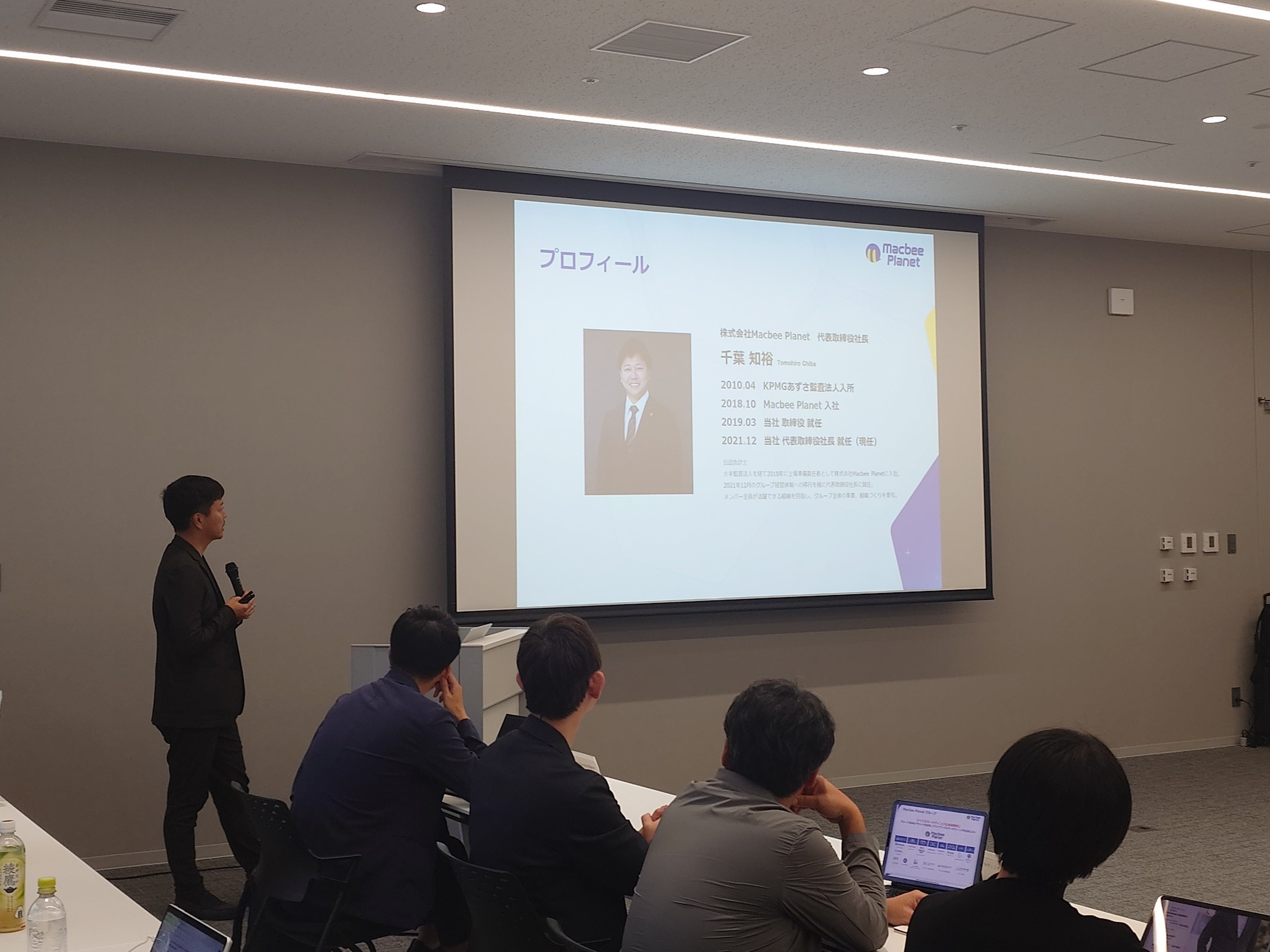 千葉は、「上場会社に求められること」というテーマで、自身が2018年10月にIPO責任者としてマクビープラネットにジョインしてから、2020年3月にマザーズ上場、2024年7月に東京証券取引所プライム市場への上場を達成するまでの体験談を語りました。