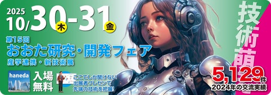 東京都大田区と公益財団法人大田区産業振興協会は、2025年10月30日(木)・31日(金)の2日間、羽田イノベーションシティにて、「第15回 おおた研究・開発フェア」を開催します。