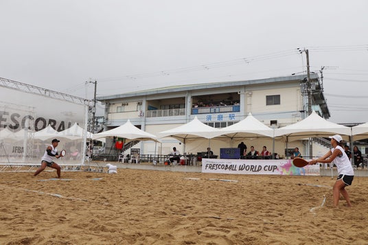 フレスコボールは、ブラジルのリオデジャネイロ発祥のビーチスポーツです。1945年にリオ・デ・ジャネイロのコパカバーナビーチで考案され、現在は世界各地のビーチで親しまれるようになっています。フレスコボールの最大の特徴は、向かい合う2人が競い合うのではなく、協力してラリーを続ける採点競技という点。競技時間は5分間、7mの距離を保って試合を行います。協力してラリーを続ける様子から「思いやりのスポーツ」とも言われ、2025年9月現在、日本全国で28のJFBA公認地域クラブと6の公認学生団体が設立され、フレスコボールを通じた地域コミュニティが形成されています。日本フレスコボール協会は、このスポーツの魅力をより多くの人に知ってもらうために2013年に設立されました。